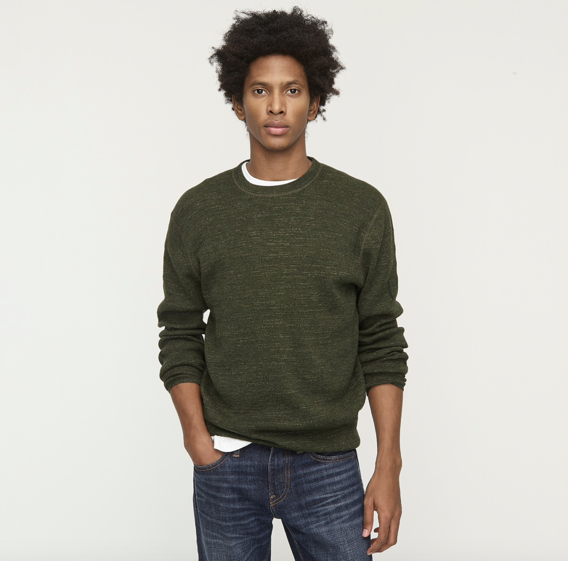 Rugged cotton sweater for looking good while lounging, $40 (on sale).